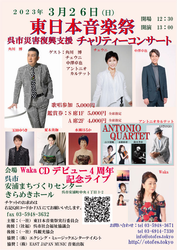 『東日本音楽祭 呉市災害復興支援 チャリティーコンサート』に出演します♪
