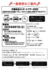 佐渡中央文化会館『アミューズメント佐渡』日帰りアクセスツアー 一般発売のご案内