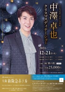 ◇一般販売10月26日(火)より開始◇12月21日(火)「中澤卓也 Christmas Dinnershow 2021」(大阪・新阪急ホテル)