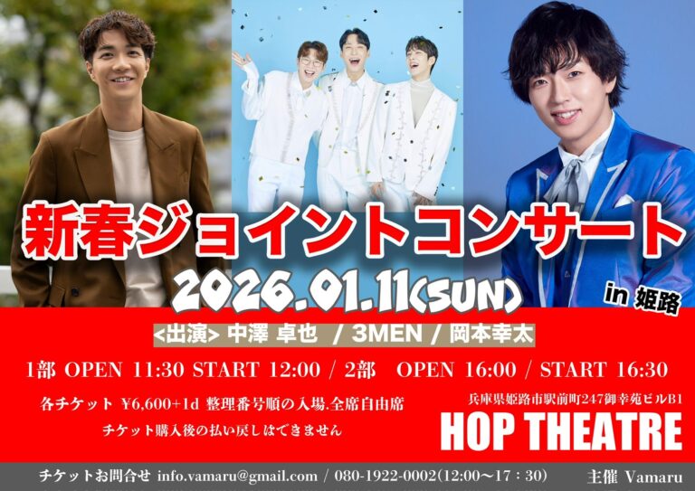 【料金】6,600円(税込・別途当日1ドリンク)整理版語順の入場・全席自由席