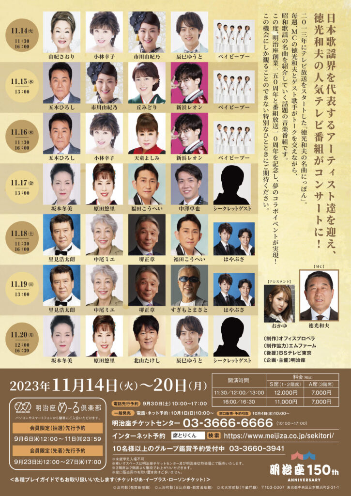 明治座150周年記念公演「徳光和夫の名曲にっぽん」明治座公演 に出演いたします♪