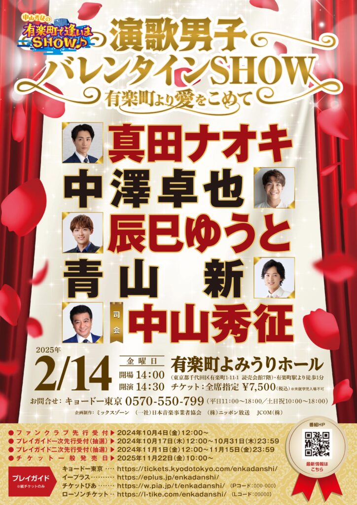 ≪放送予定≫「中山秀征の有楽町で逢いまSHOW 演歌男子バレンタインSHOW有楽町より愛をこめて」は、イベント終了後、ニッポン放送・J:COMで放送されます。