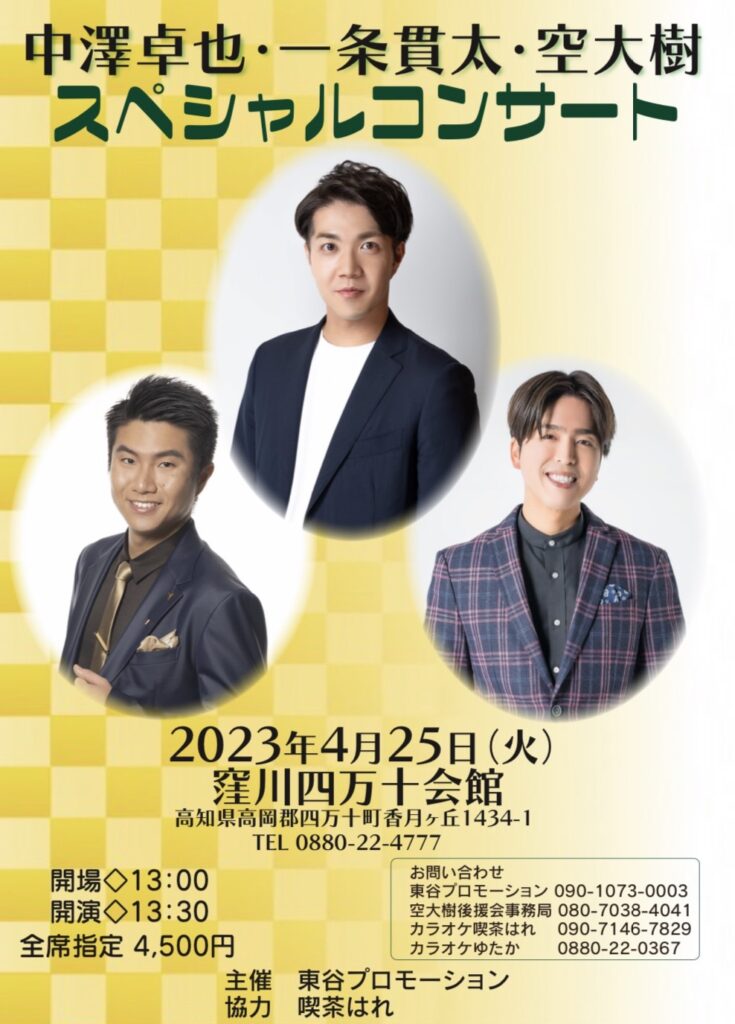 『中澤卓也・一条貫太・空大樹 スペシャルコンサート』(高知・窪川四万十会館/大月環境改善センター)