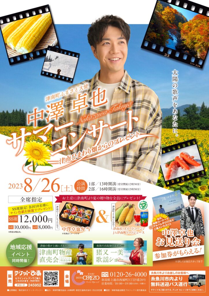 「津南町ふるさと大使・中澤卓也 サマーコンサート 津南ひまわり畑からのプレゼント」