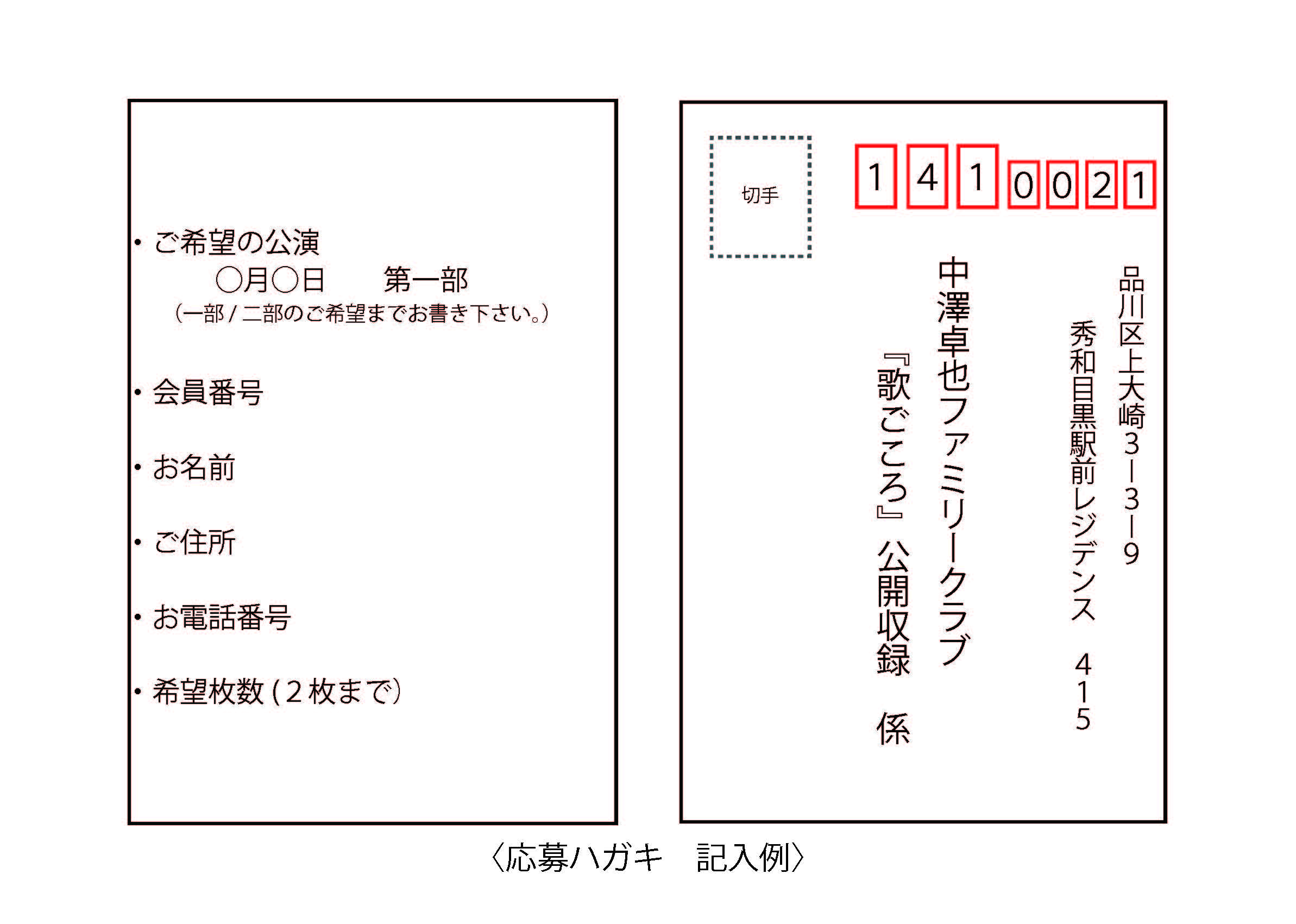 各公演ごとに必要事項(会員番号・お名前・ご住所・連絡先・お申し込み人数2名まで)を明記の上、お葉書にてお申し込みください。