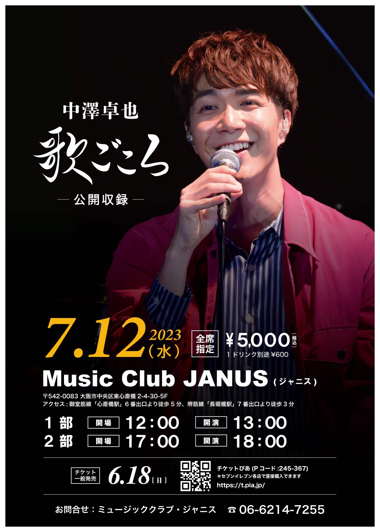 7月12日(水)『歌ごころ 公開収録』一般発売について追記いたしました。