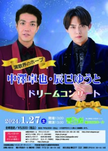 ◇開催のお知らせ◇1月27日(土)『演歌界のホープ 中澤卓也・辰巳ゆうと ドリームコンサート』(埼玉・響の森 桶川市民ホール)