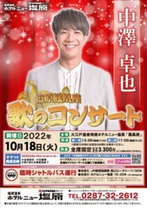 ◇開催のお知らせ◇10月18日(火)「中澤卓也 塩原鳳凰座 歌のコンサート」(塩原温泉・ホテルニュー塩原)