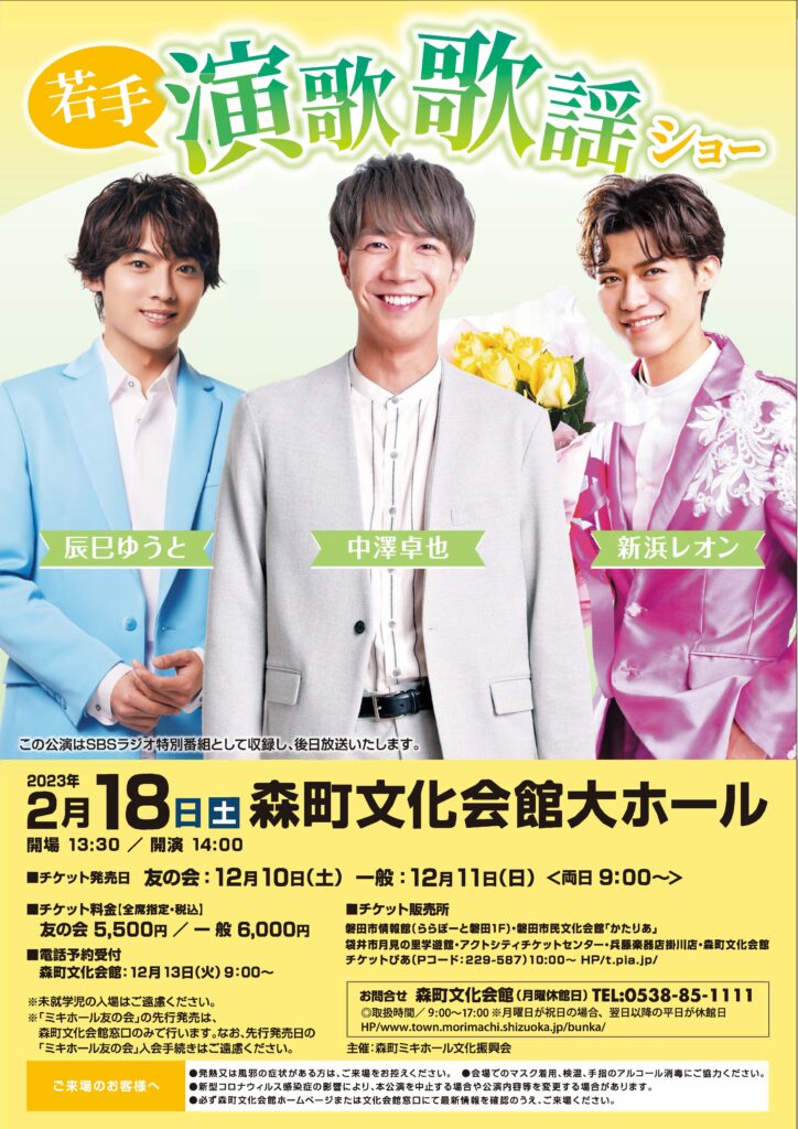 ※森町文化会館「ミキホール友の会」の先行発売は、森町文化会館窓口のみで行います。なお、先行発売日の「ミキホール友の会」入会手続きはご遠慮ください。