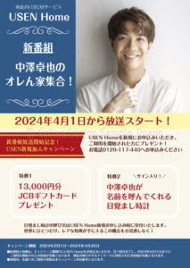 家庭向けBGMサービス USEN Home 新番組『 中澤卓也の オレん家集合!』