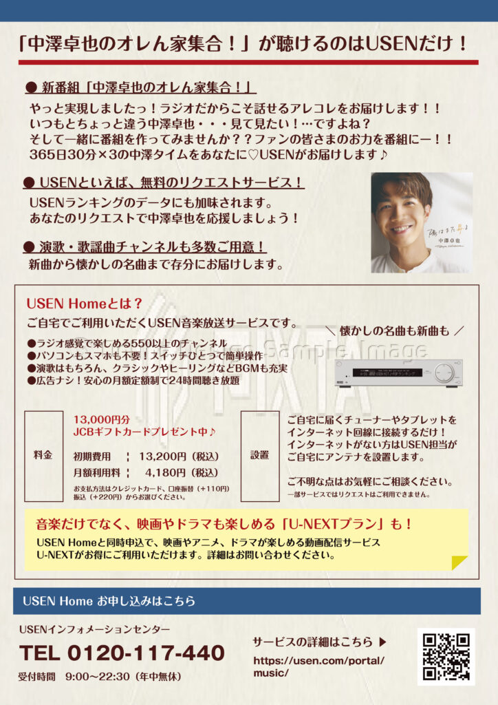 「中澤卓也のオレん家集合!」が聴けるのはUSENだけ!