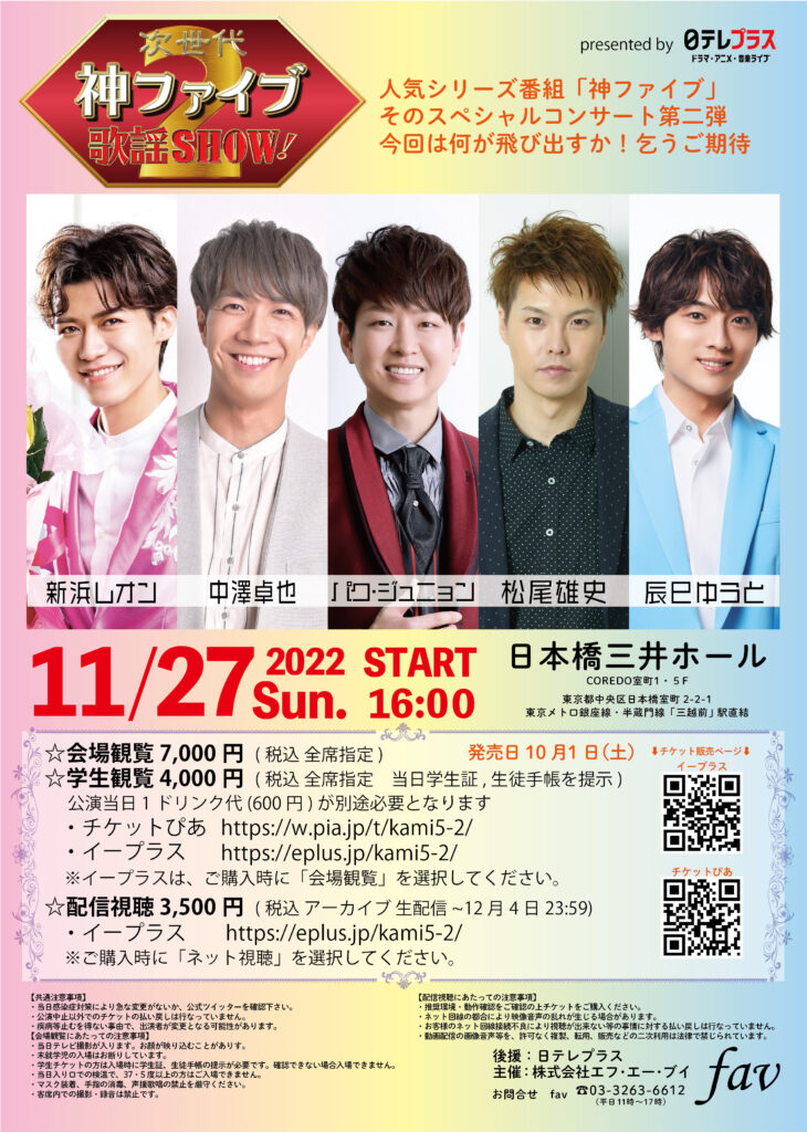 ☆出演のお知らせ☆11月27日(日)『神ファイブ スペシャルコンサート2』(東京・日本橋三井ホール)